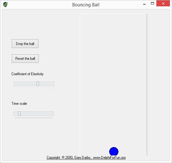 Permite indicar el coeficiente de elasticidad, que es la cantidad de energía que se pierde en cada rebote de la pelota y una escala de tiempo, para ir viendo lentamente el movimiento de caída y de rebote.